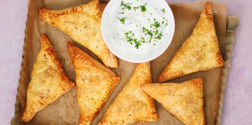 Bätterteigecken mit Gemüsefüllung und Dip
