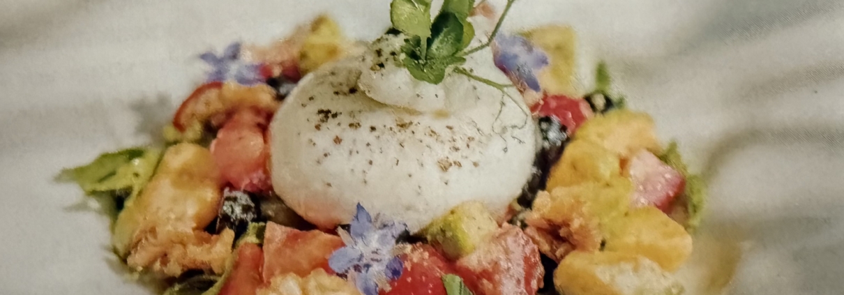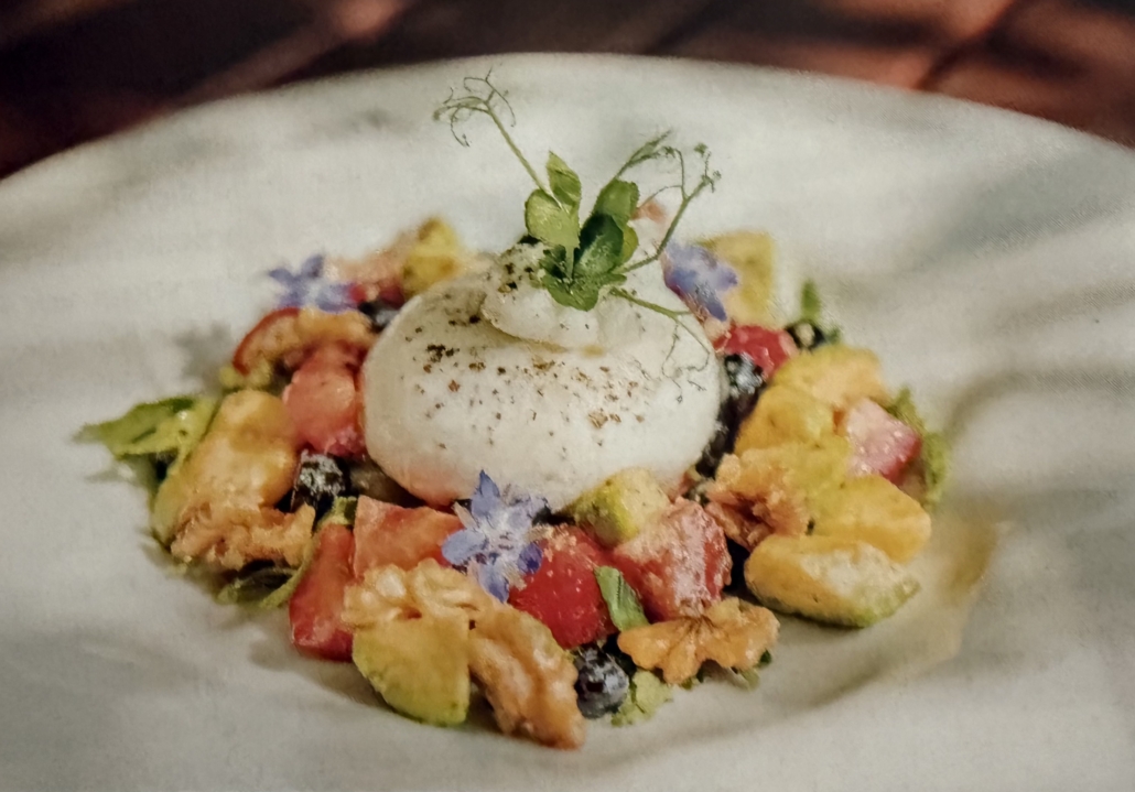 Burrata auf Avocado-Beeren-Salat mit Rucola