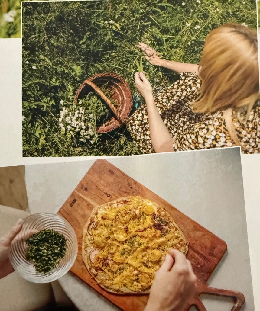 Die restlichen gehackten Kräuter auf dem Flammkuchen verteilen und servieren.
