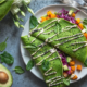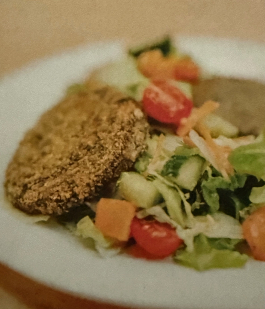 Quinoa-Spinat-Laibchen auf Blattsalat mit Joghurtdip